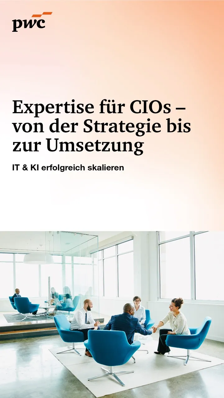 PwC unterstützt CIOs dabei, ihr Unternehmen zum digitalen Champion zu formen. Dafür brauchen sie Innovations- und Durchsetzungskraft, Strategie- und Umsetzungswillen sowie Spezialistenkompetenz in allen Bereichen der IT-Transformation. Das CIO Advisory-Team von PwC hat diese Kompetenz. Wir sind erfahren aus mittlerweile hunderten erfolgreichen IT-Transformationsprojekten – und hochmotiviert, Ihr Unternehmen zu unterstützen.
