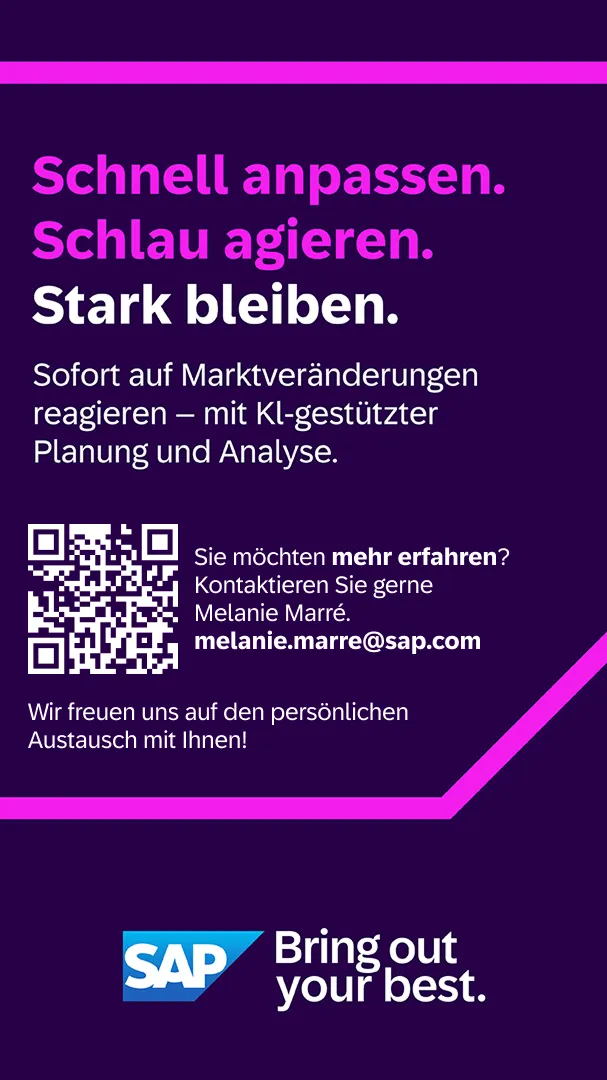 Als weltweit führender Anbieter von Anwendungen und KI für Unternehmen sitzt SAP an der Schnittstelle zwischen Wirtschaft und Technologie. Seit über 50 Jahren vertrauen Unternehmen darauf, dass SAP sie durch die Zusammenführung geschäftskritischer Abläufe in Finanzwesen, Beschaffung, Personalwesen, Lieferkette und Customer Experience dabei unterstützt, bestmögliche Ergebnisse zu erzielen.
